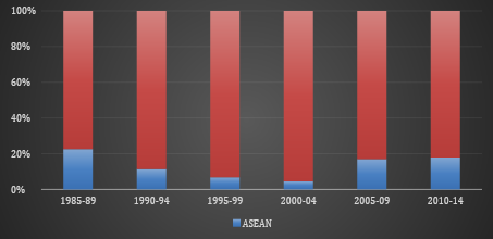 Figure 3: ASEAN’s share in Indian OFDI flow